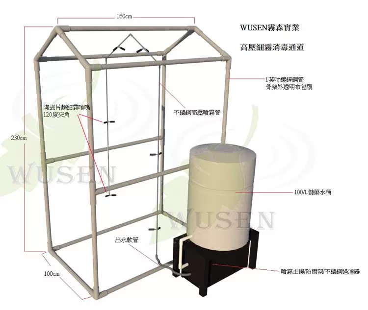 | 管材 | 304不鏽鋼高壓噴霧館 |